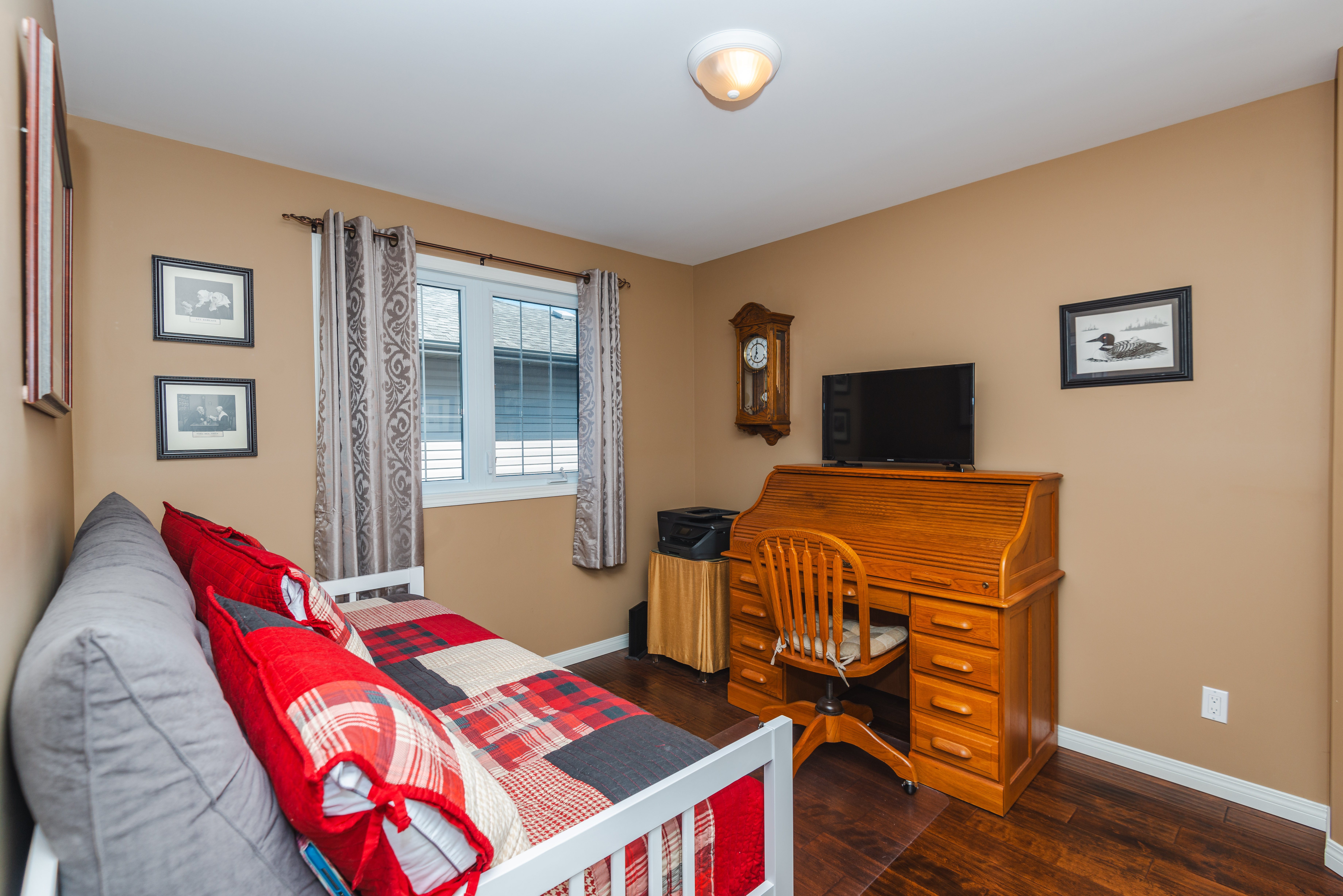 situated on the upper level with a full ensuite and dream walk in closet. Throughout the home you will find vaulted ceilings, gleaming hardwood, and meticulous workmanship. A spacious recroom provides a wonderful space to relax and also offers enough space to accommodate a 4th bedroom if you so