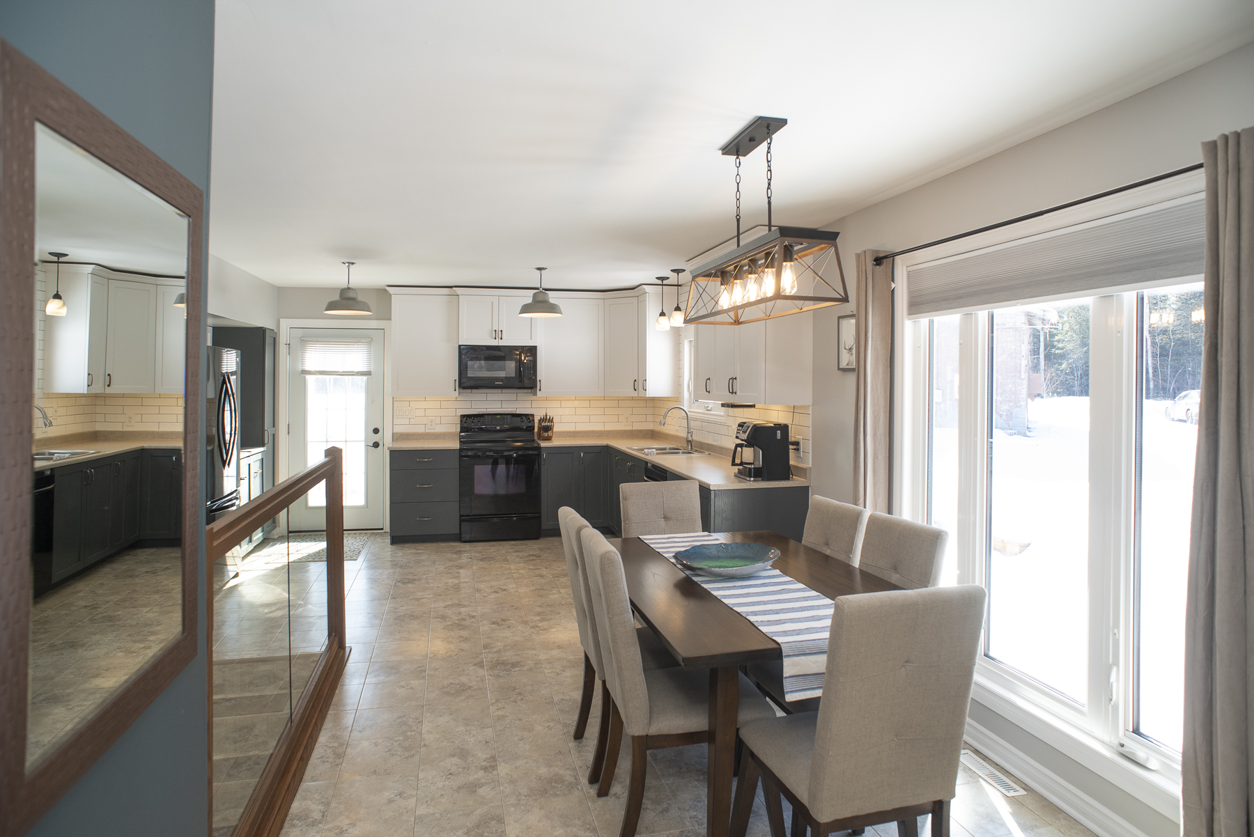 No need to sacrifice style to live in the country- this home features a contemporary open concept streamlined kitchen with a spacious dining area that opens onto the bright and cozy living room that showcases a beautiful panoramic rural view.