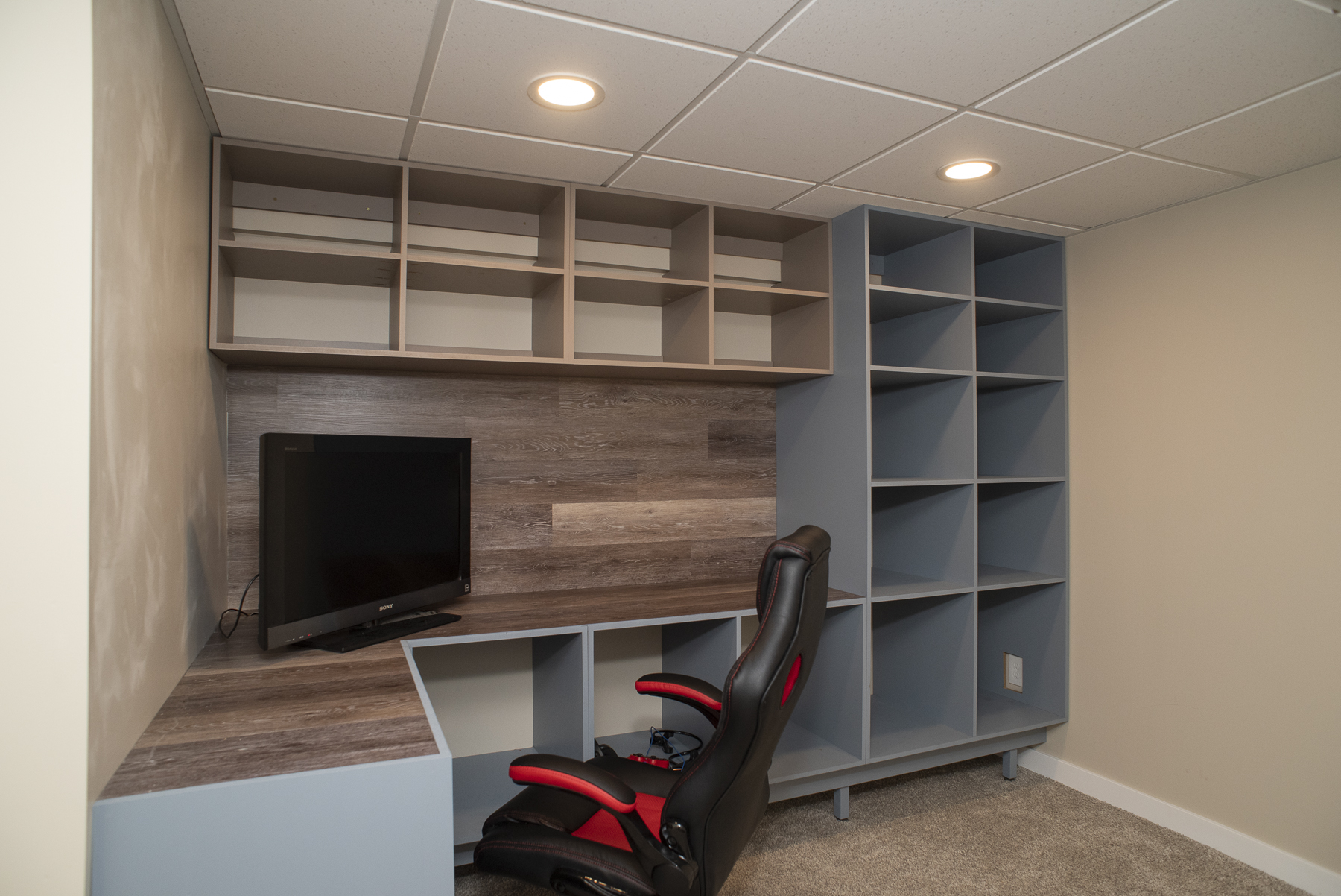 A glass stairwell leads to the extra large recroom, 4th bedroom, AND additional office space. There is a room that has been designed to accommodate a 2nd bath, and there is also a bright and cheery well organized laundry room.